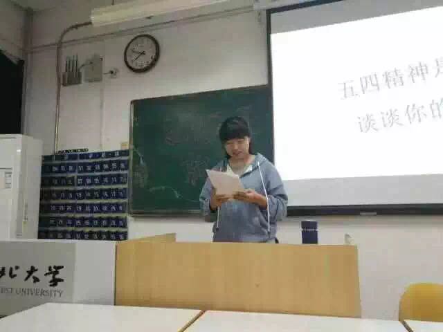 首先,盖丽娅同学说明了今年是五四运动100周年的时间背景,组织开展本次团会,目的是重温100年前那段激情燃烧的岁月。