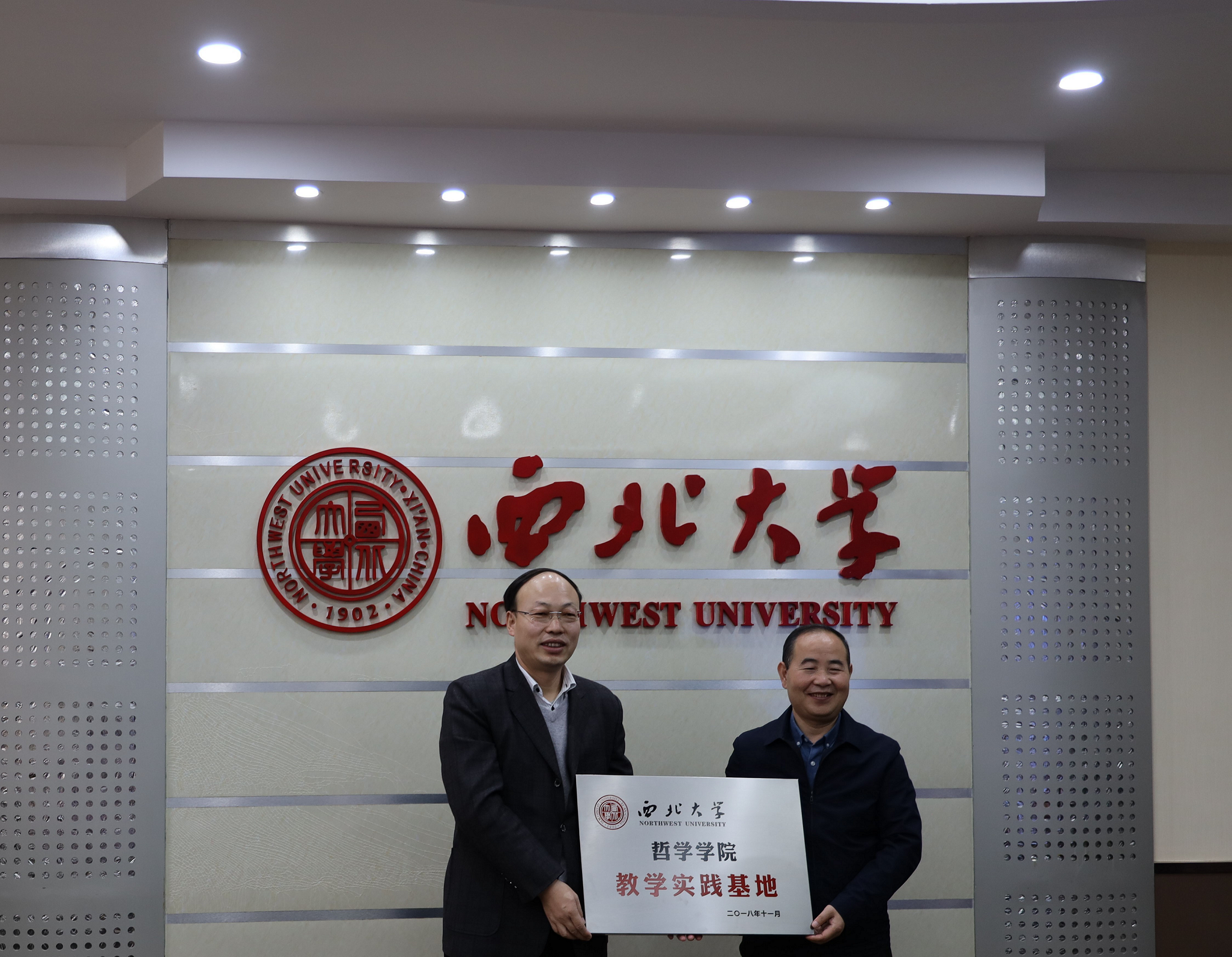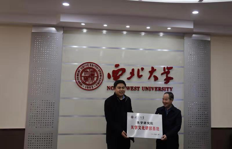 国内合作与校友工作处处长崔延力代表学校授眉县横渠书院“西北大学关学研究院关学文化研修基地”牌
